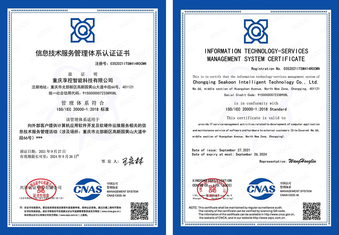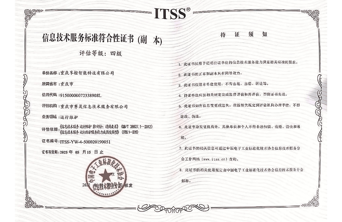 獲信息技術(shù)運行維護標(biāo)準符合性證書